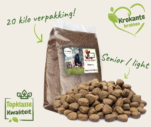 Ältere Hunde ab 8 Jahren benötigen eine andere Zusammensetzung von Hundefutter als Welpen, Jugendliche und erwachsene Hunde. Wir haben ein 100% hochwertiges, ausgewogenes Futter speziell für Hunde ab 8 Jahren. Ältere Hunde haben wie Menschen einen langsamen Stoffwechsel. Oft fangen Menschen dann an, weniger Futter zu geben, weil diese Hunde zu dick werden. Weniger Futter zu geben, scheint die Lösung zu sein, ist es aber definitiv nicht. Ältere Hunde brauchen eine andere Zusammensetzung. Eine Zusammensetzung aus hochwertigen Zutaten, die aber auch ausreichend satt macht. Geben Sie Ihrem Hund also das beste Senioren-Hundefutter für ein langes und gesundes Hundeleben.