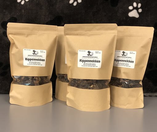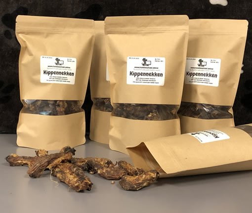 Wir verwenden getrocknete Hühnerhälse als ultimative Belohnung für den Hund. Am Ende des Trainings, wenn der Hund sein Bestes gegeben hat, kann er fröhlich auf einem getrockneten Hühnerhals herumkauen. Aber die Hühnerhälse sind auch ideal als gesunder Snack für Ihren Hund oder für das Kistentraining. Unsere Hunde lieben sie!