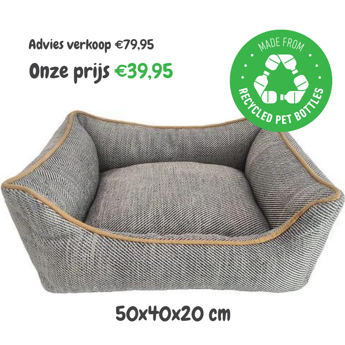 Die Hundekissen von Resploot sind nicht nur sehr bequem, sondern auch robust und leicht zu reinigen. Die Resploot-Hundekissen werden aus 100% recycelten PET-Flaschen hergestellt. Auf diese Weise leisten Sie einen Beitrag zur Plastiksuppe im Meer, zur Vermüllung und zur Rettung mehrerer vom Aussterben bedrohter Tiere. Aber wenn Sie es nicht für die Umwelt tun, dann tun Sie es für Ihren Hund. Diese Hundekissen sind von hervorragender Qualität und passen dank ihrer neutralen Farbe in jede Einrichtung.
