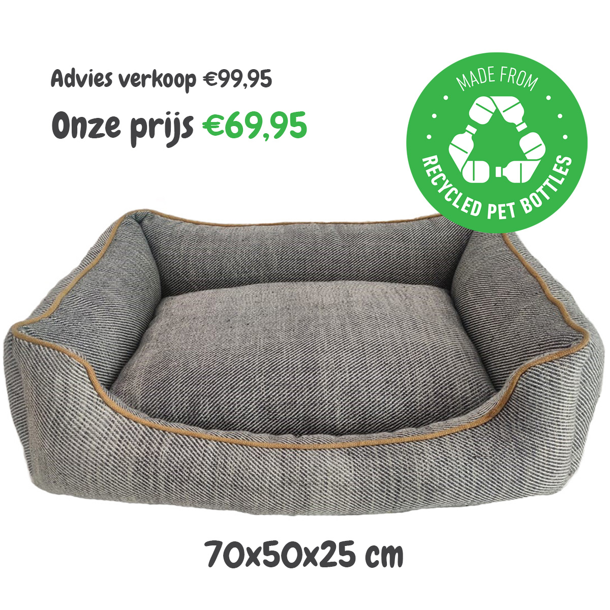 Die Hundekissen von Resploot sind nicht nur sehr bequem, sondern auch robust und leicht zu reinigen. Die Resploot-Hundekissen werden aus 100% recycelten PET-Flaschen hergestellt. Auf diese Weise leisten Sie einen Beitrag zur Plastiksuppe im Meer, zur Vermüllung und zur Rettung mehrerer vom Aussterben bedrohter Tiere. Aber wenn Sie es nicht für die Umwelt tun, dann tun Sie es für Ihren Hund. Diese Hundekissen sind von hervorragender Qualität und passen dank ihrer neutralen Farbe in jede Einrichtung.