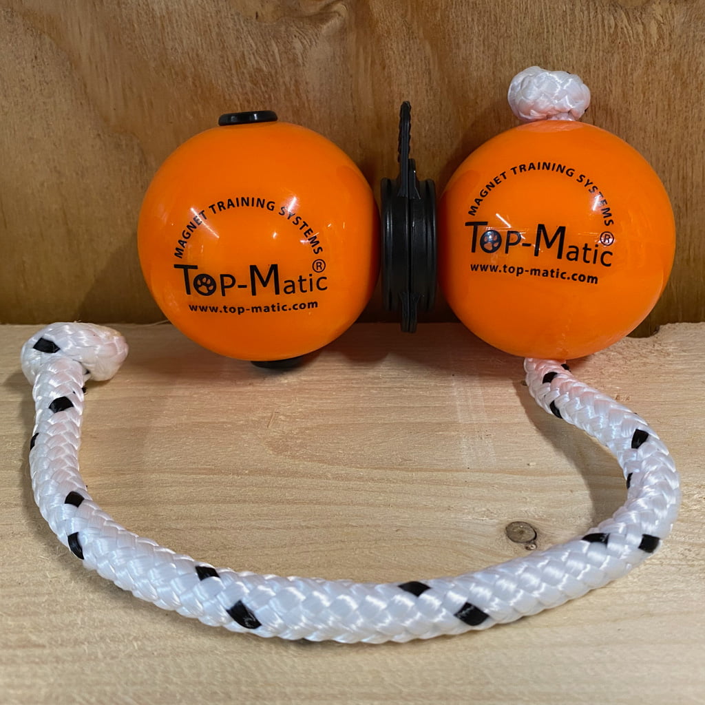 Ich empfehle Ihnen, Ihren Hund zunächst mit den Top-Matic Magnetbällen völlig "verrückt" zu machen. Es ist am besten, wenn Sie nach jeder Trainingseinheit mit den Magnetbällen spielen. Die besten Ergebnisse erzielen Sie, wenn Sie zwei Magnetbälle haben. Deshalb besteht das Top-Matic Profi-Set auch aus zwei Magnetbällen. So lernen Sie am einfachsten, wie Sie die Magnetkugeln apportieren können. Zunächst beginnen wir ohne den externen Magneten(Top-Matic Multi Power Clip). Bringen Sie Ihrem Hund bei, dass diese Bälle etwas ganz Besonderes sind. Geben Sie die Bälle also niemals als Spielzeug, sondern nur als Abschluss des Trainings, um ein Zug- oder Apportierspiel zu spielen.
