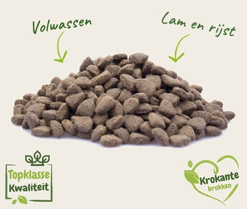 Uitgebalanceerde hondenbrokken van 100% hoogwaardige grondstoffen met als eiwitbron lam.
