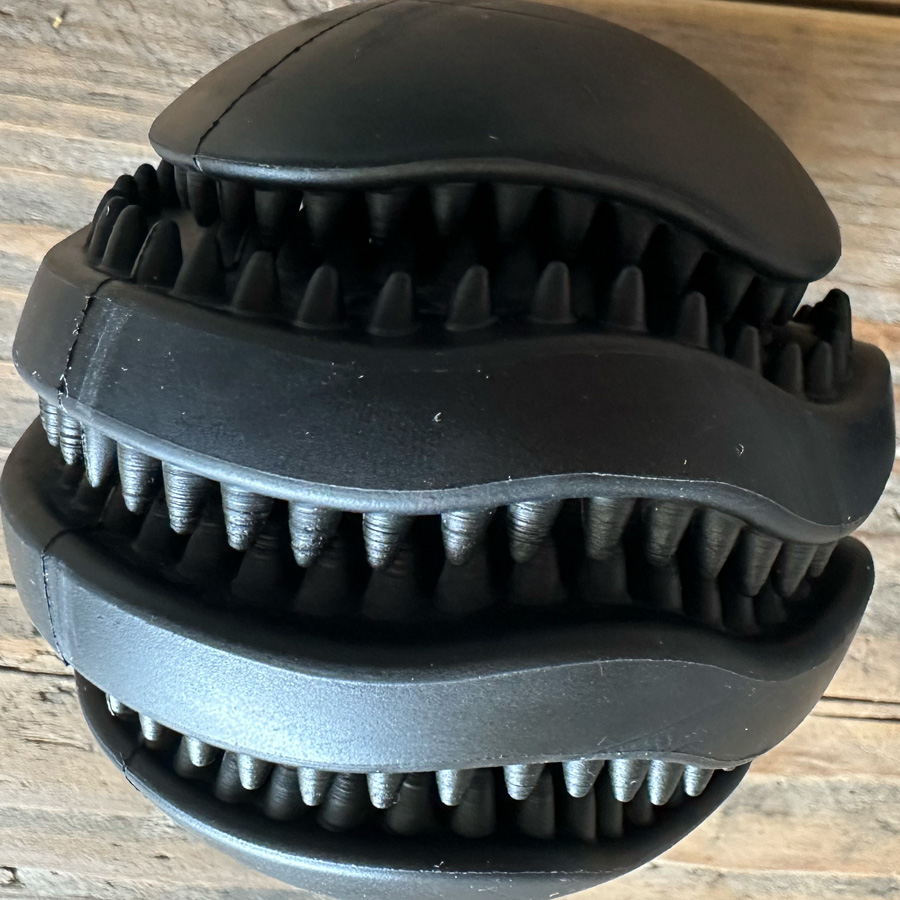 Functie: Bal met ribbelstructuur, ook geschikt om snacks tussen te stoppen