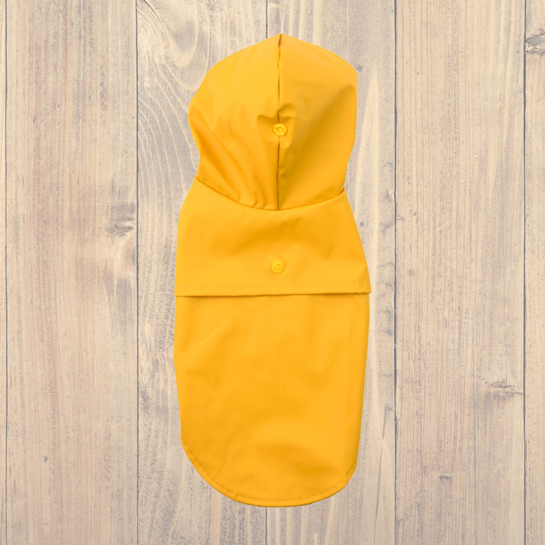 Hondenregenjas met capuchon in een mooie klassieke gele kleur, waarmee je opvalt, maar niet té.