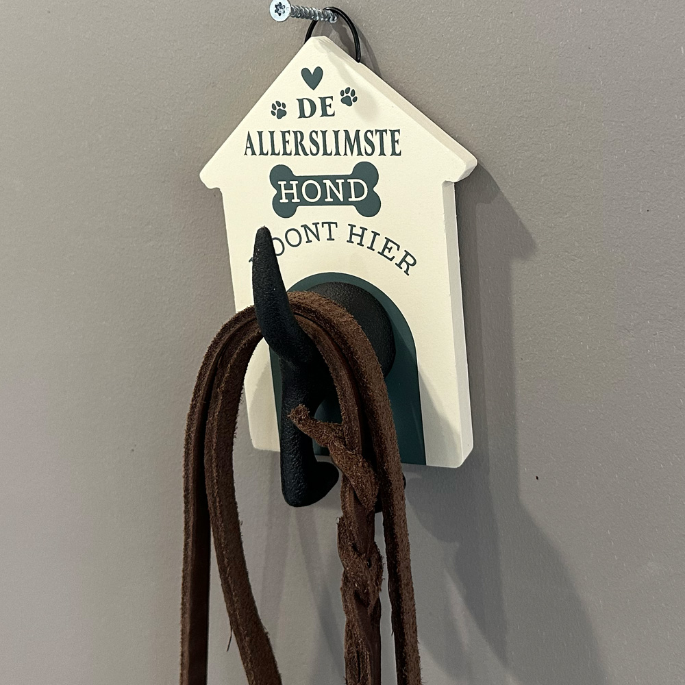 Unieke hondenkapstok met de tekst "De Allerslimste hond woont hier"