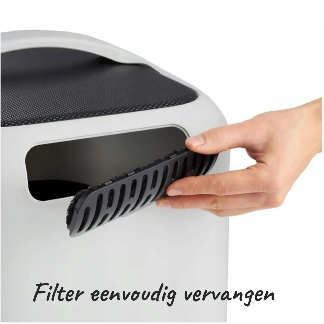 Om geuroverlast verder te beperken, is de kattenbak ontworpen met een slimme luchtgeleiding. De vorm van de binnenkant zorgt ervoor dat lucht die uit de kattenbak ontsnapt altijd langs het filter gaat.