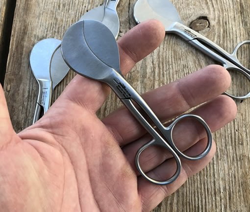 Door de "bek" van de navelstrengschaar kan de navelstreng niet meer wegglijden zoals met de schaar in de video. Hierdoor kan je veel sneller werken wat het leven van een puppy zou kunnen redden. Een uniek ontwerp uitgebreid getest en werkt geweldig.
