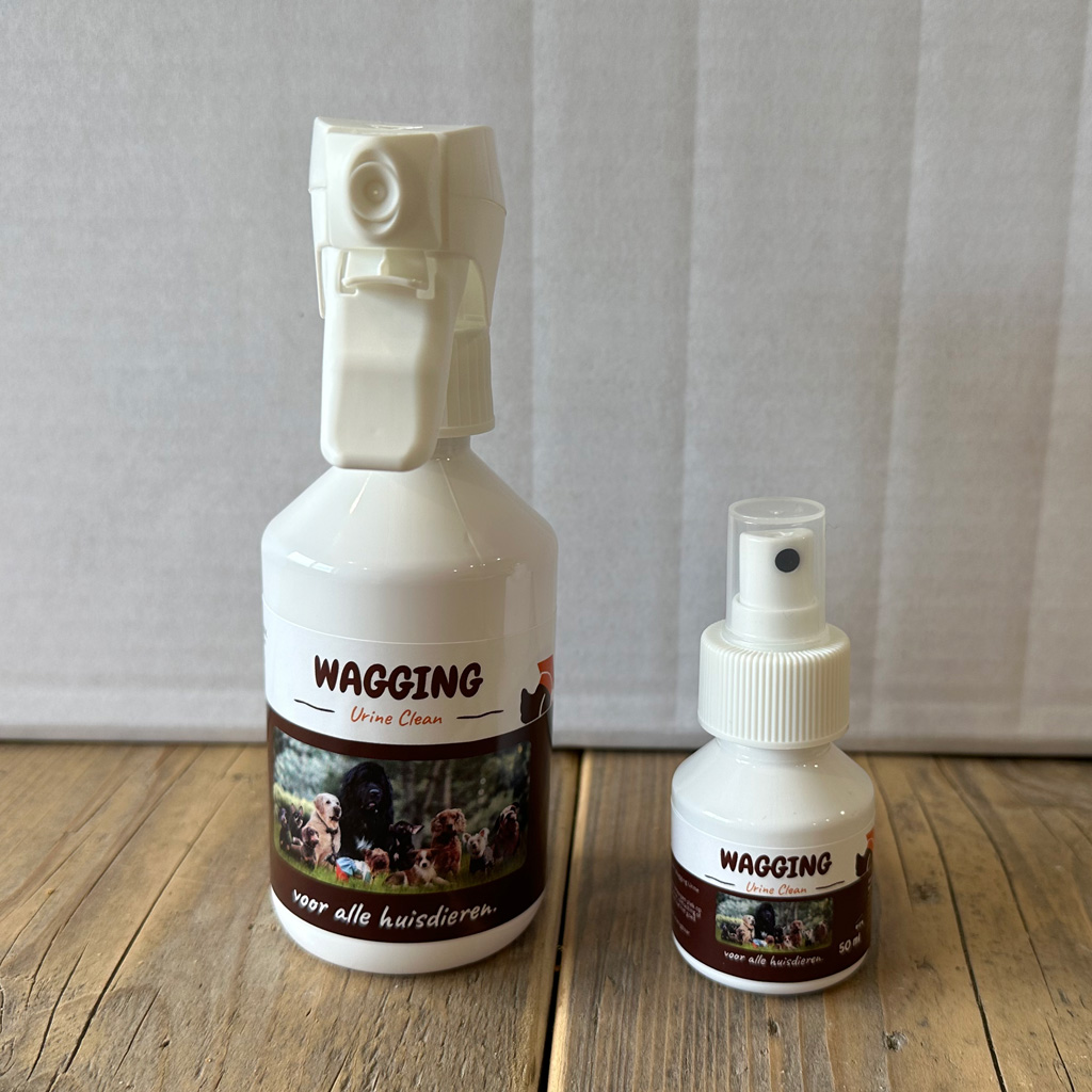 Wist je dat puppy's snel op dezelfde plek plassen wanneer ze het eenmaal ergens in huis gedaan hebben? Dat komt omdat ze de geur van de urine nog ruiken. Ook al maak je het nog zo goed schoon honden hebben een veel betere neus dan wij mensen en blijven de urine ruiken. Reden om op die plek nogmaals een plasje te doen. Dit kan je voorkomen met Wagging urine Clean. Met dit unieke product maak je urine vlekken niet alleen schoon maar je breekt de urine echt af waardoor je puppy het niet meer ruikt.