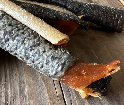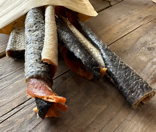 Gedroogde zalmvleeshuid voor je hond